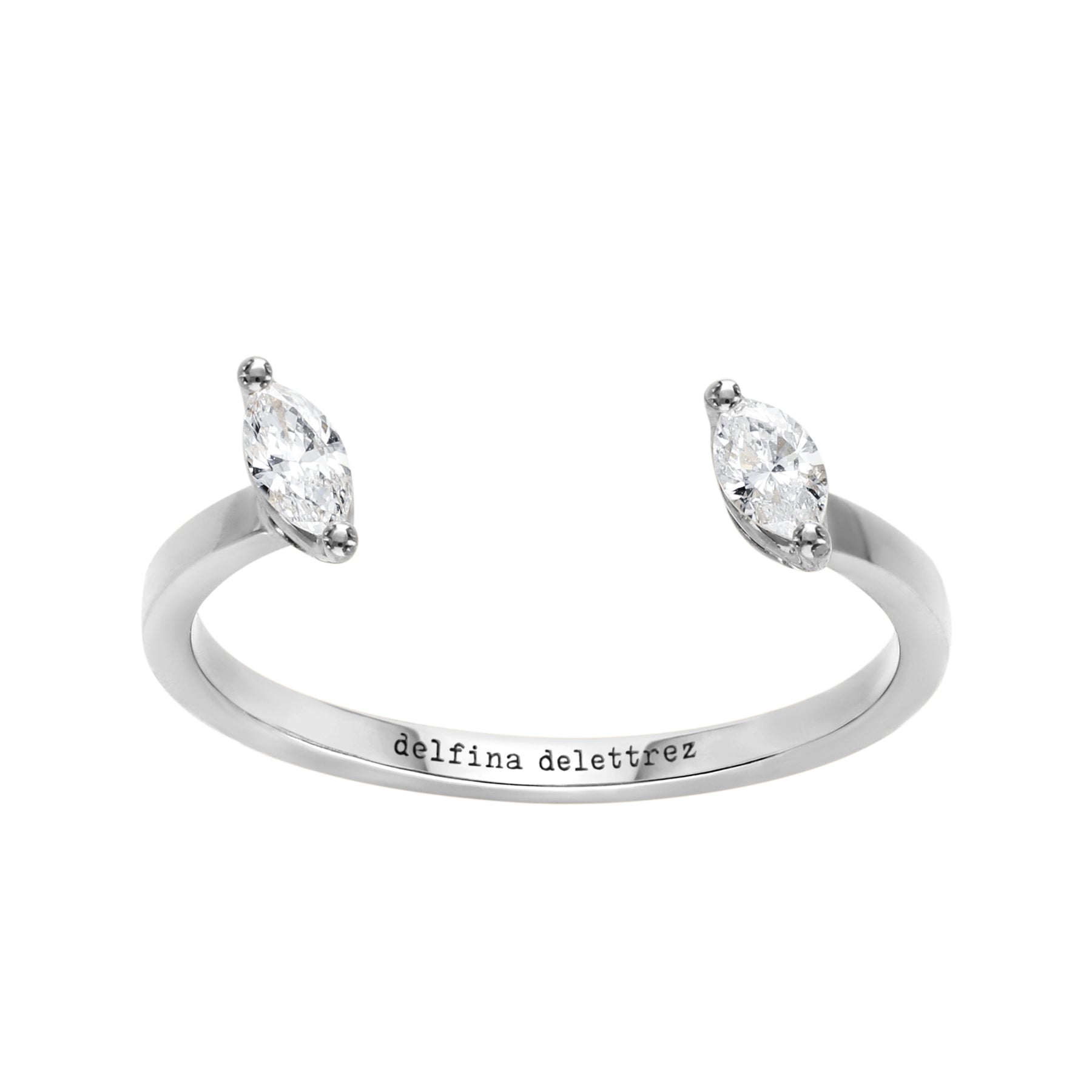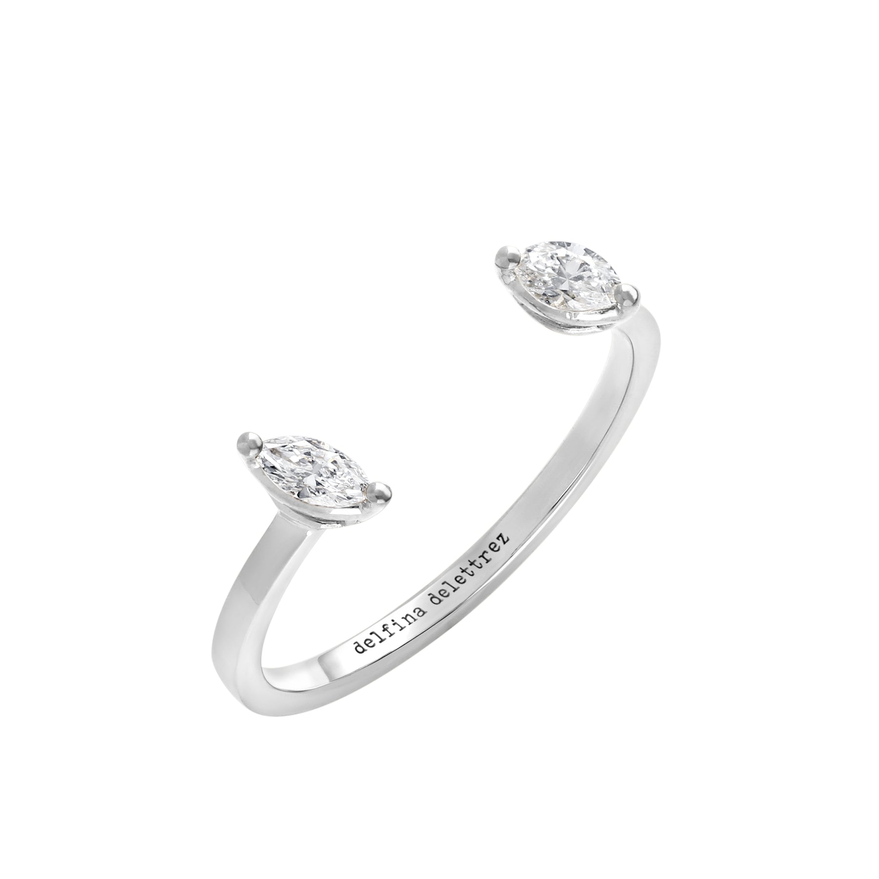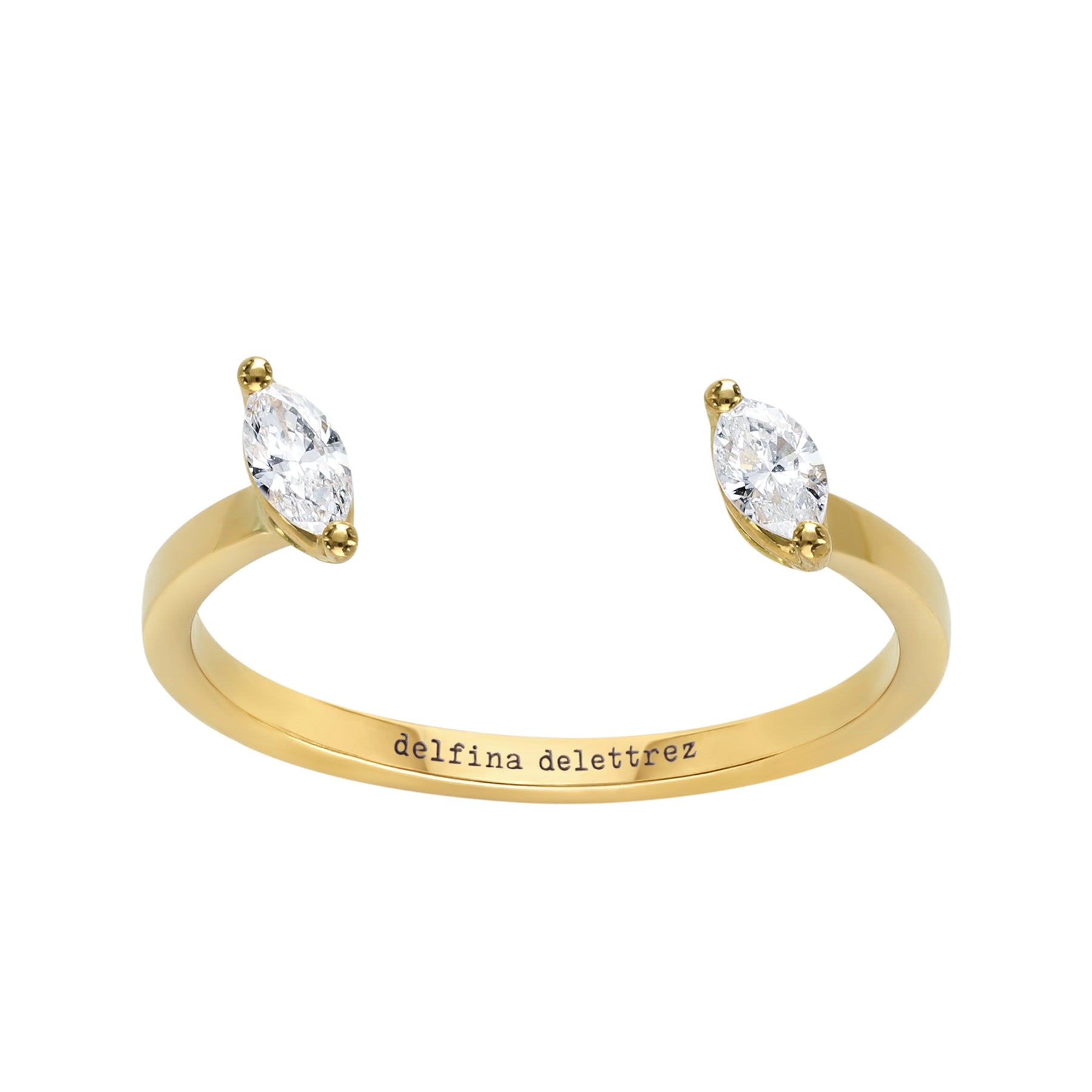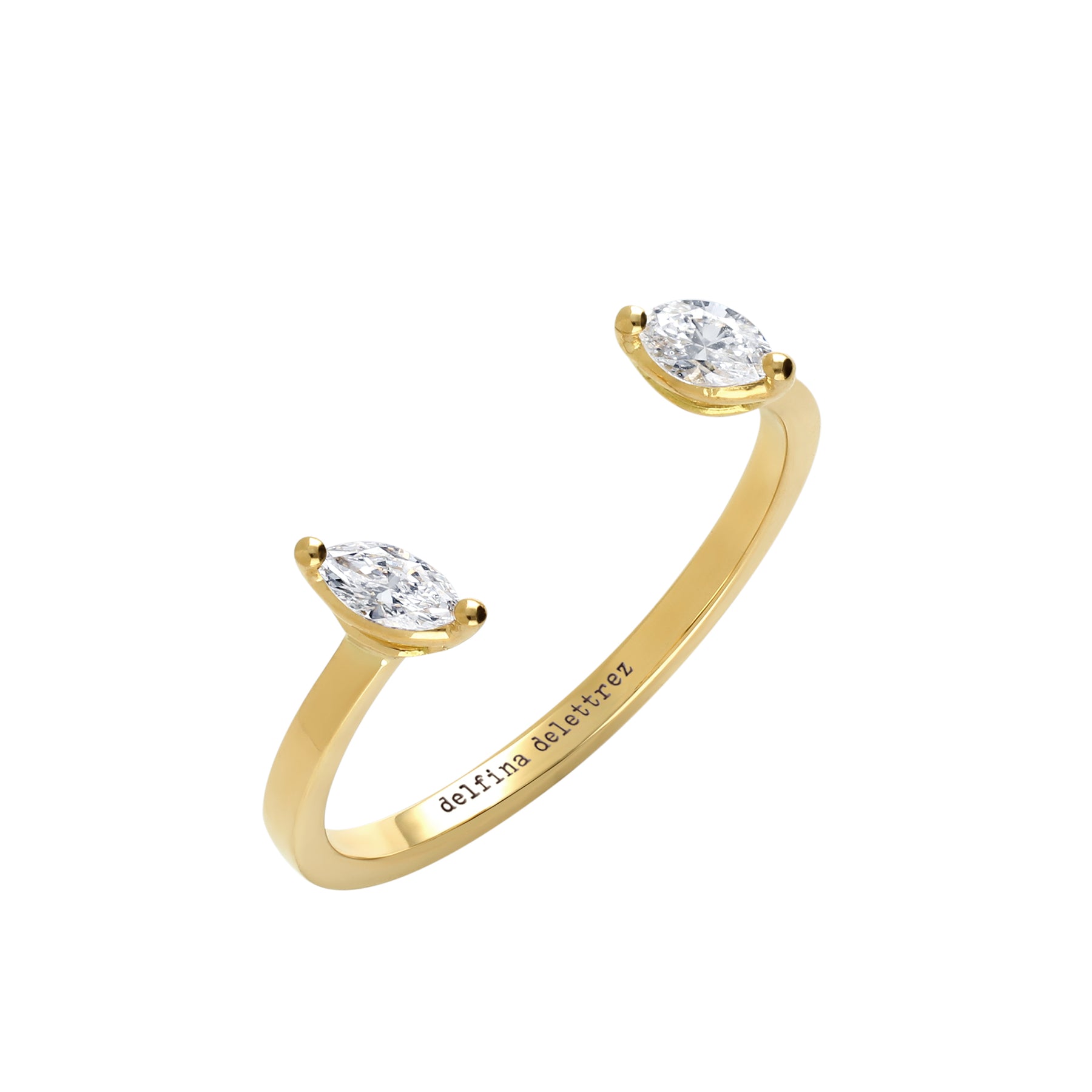 open gold band ring showcasing Delfina Delettrez's iconic phantom dots design featuring two marquise-cut white diamonds